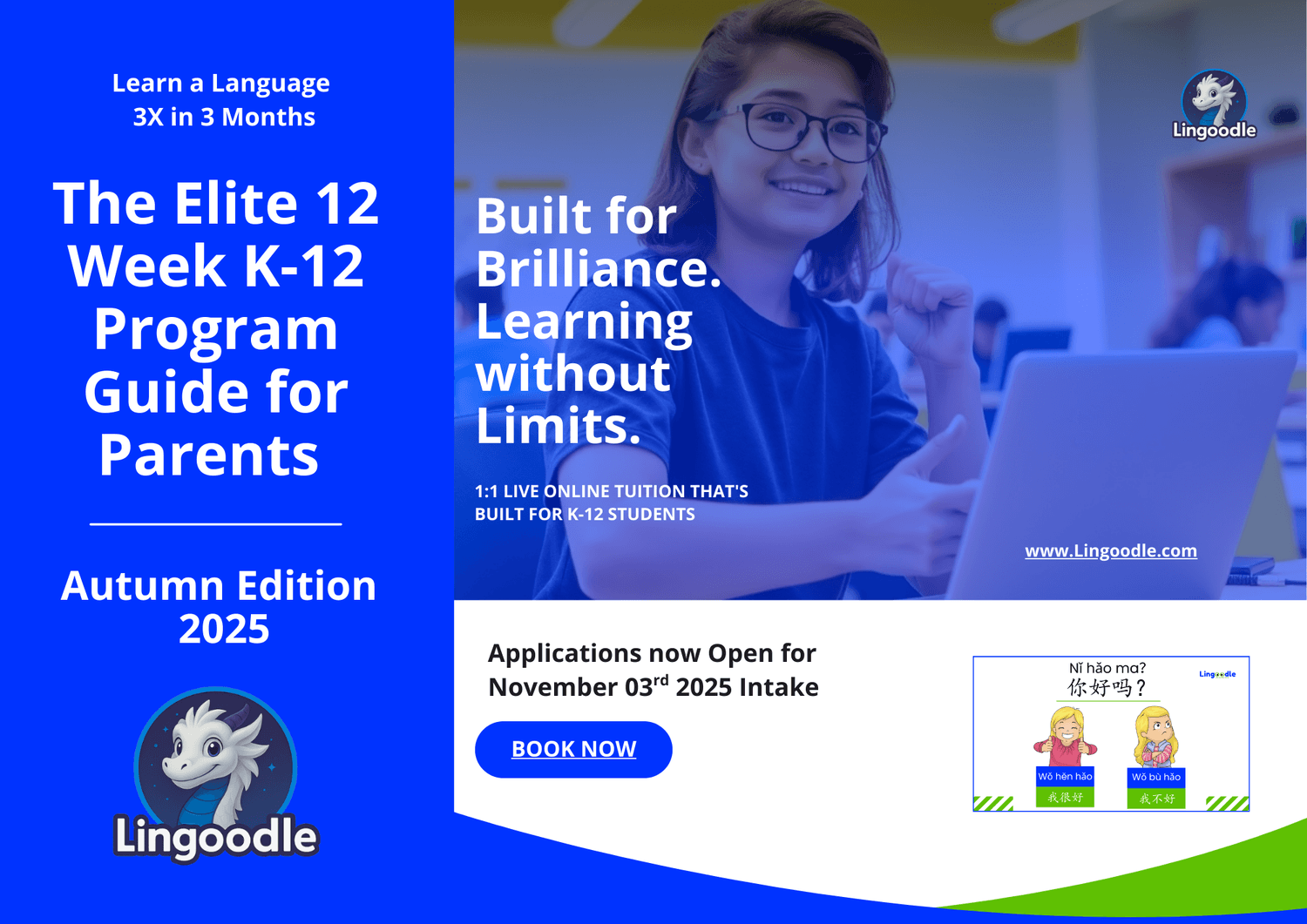 Welcome to Lingoodle: We're delighted to welcome your child online for a fun, educational & immersive Chinese language learning journey! Post-enrolment; you'll receive your child's full schedule, first lesson link with digital content & an introduction to their personal tutor & private chat group.